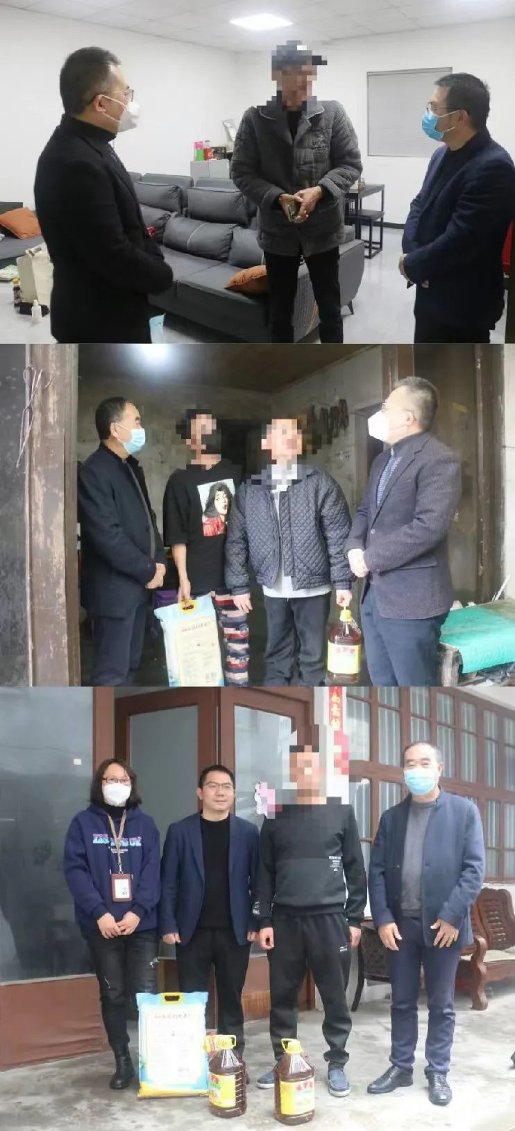 在新年来临之机,为让涉毒人员感受到政府和社会的关怀和温暖,帮助他们更好地融入社会生活,树立对美好生活的向往。1月13日下午,乐清市城南街道党工委副书记李豹、政法委员倪孟盛、禁毒办主任周芦璐、乐清市重庆商会执行秘书长吴岩芳等一行走访慰问生活比较困难的乐清籍涉毒人员金某、朱某、王某,重庆万州籍涉毒人员刘某等,送去大米、油等爱心物资。