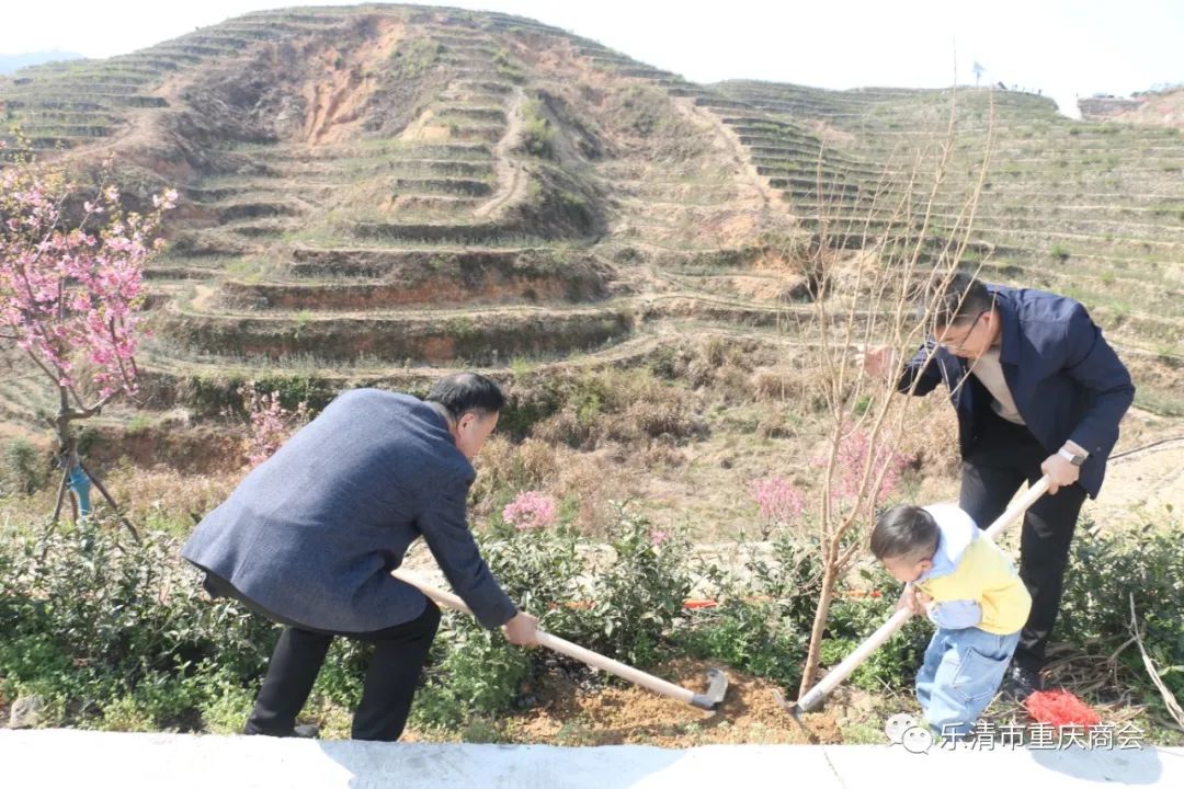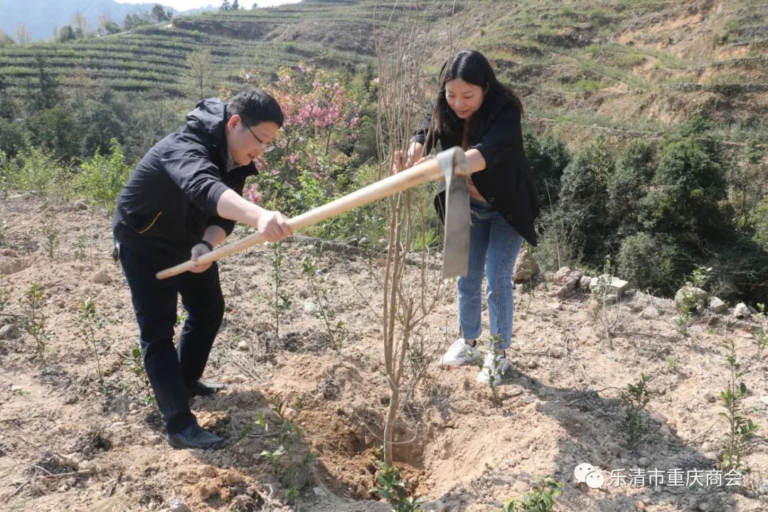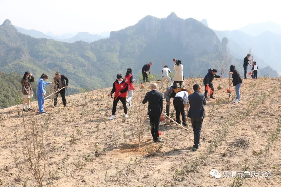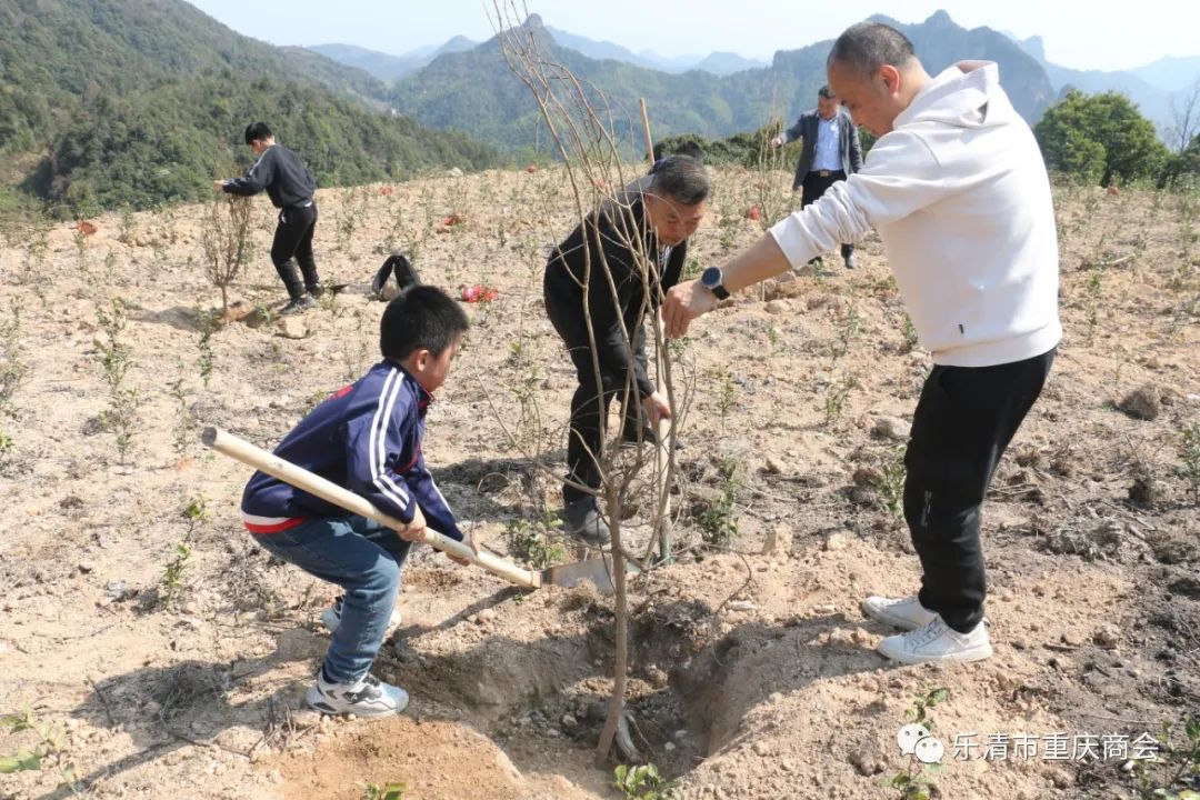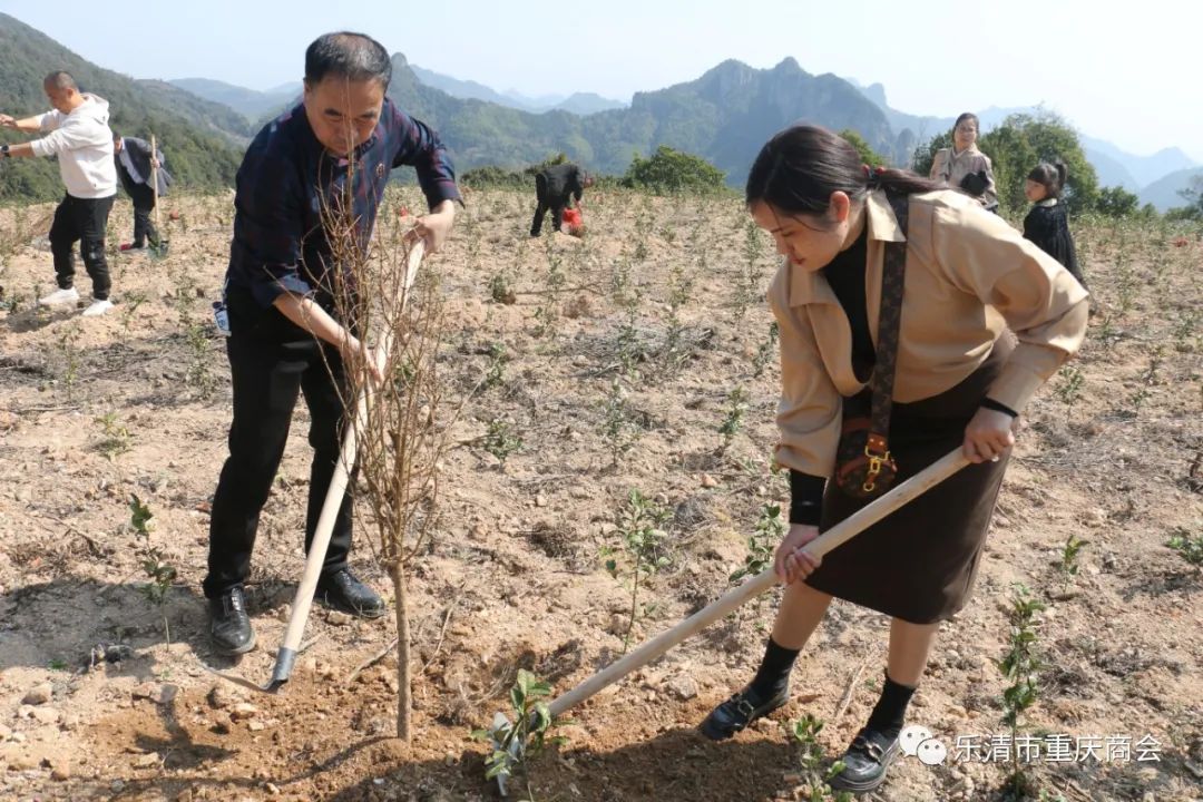 乐清市重庆商会荣誉会长胡春波,本月轮值会长谭灵,常务副会长黄蜀东,执行秘书长吴岩芳,副会长祁美山、华永春、罗春华、程军及商会工会、义工队、妇联、团支部等代表共30余人参加义务植树活动。