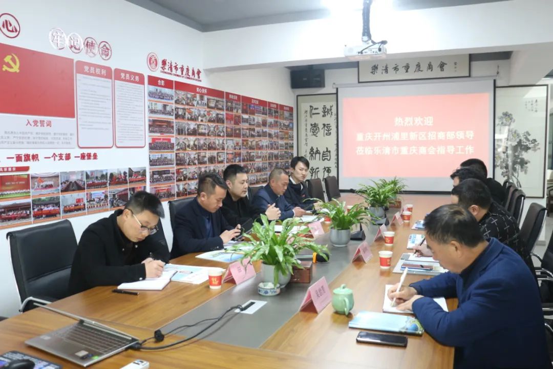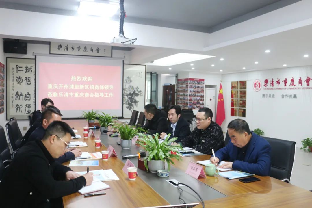 3月18日上午,重庆市开州浦里新区招商部部长杨栩,副部长田冲、曾宇,在乐清市贵州商会执行长李涛及开州在浙南人员联系服务中心主任王聪的陪同下,莅临乐清市重庆商会座谈交流。