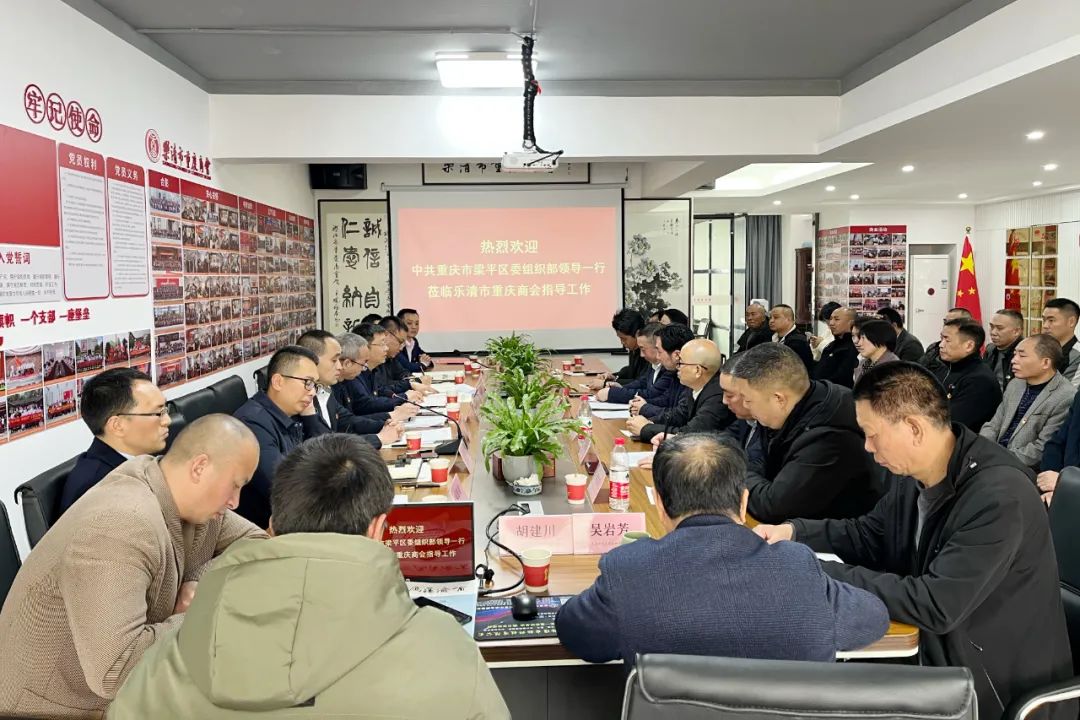 3月26日上午,重庆市梁平区委组织部副部长郑绍东、梁平区蟠龙镇党委书记张宏、梁平区委党员教育中心主任刘辖、梁平区蟠龙镇组织委员谭大德、梁平区蟠龙镇党政办副主任胡建川一行莅临乐清市重庆商会指导工作。