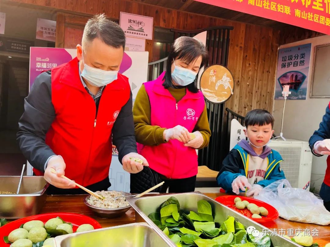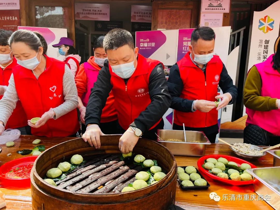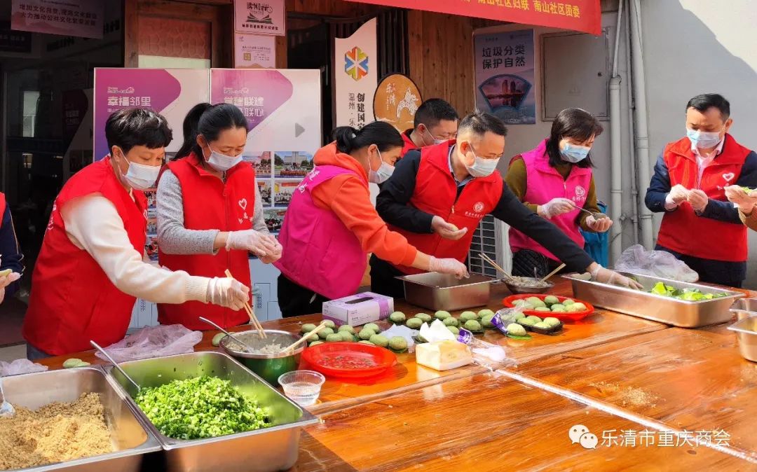 为弘扬中华民族优秀传统文化,加强党组织联动,4月3日,乐清市重庆商会党支部与乐清市新居民服务中心党支部、城南街道南山社区党委、重庆梁平区(温州)流动党支部、南山社区妇联及辖区志愿者们在南山社区党群服务中心制作清明民俗美食--青团。