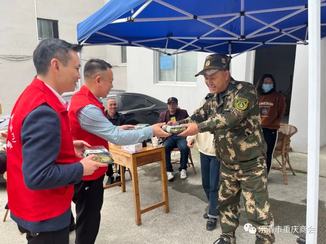 刚出炉的青团装盒封口,由乐清市重庆商会党支部书记吴建波带队和党员志愿者们一起,送给独居老人和值守在辖区各个森林卡口的工作人员,让他们感受到支部和社区的关怀。