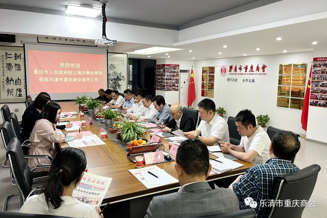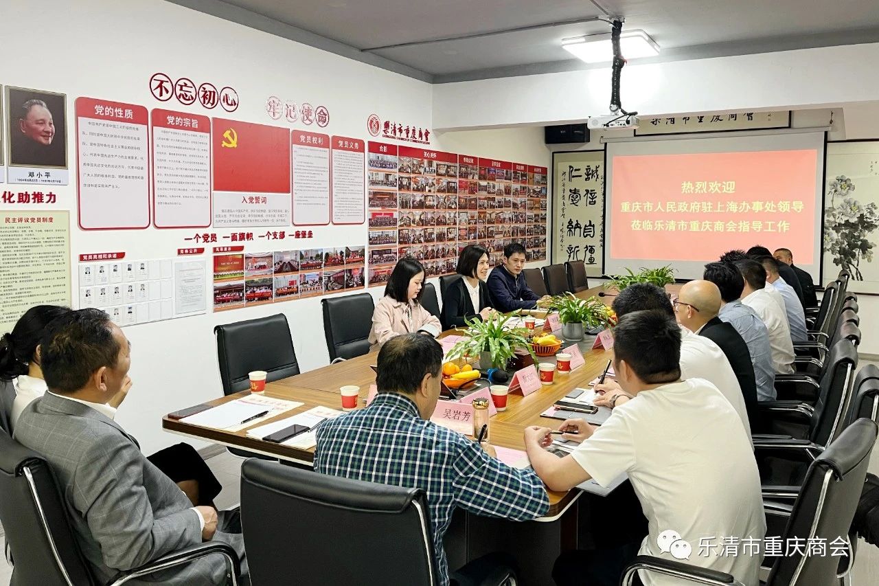5月10日下午,重庆市人民政府驻上海办事处党组成员、经合处处长李滨麓,劳务处副处长顾绍春,经合处三级主任科员文机利等,莅临乐清市重庆商会走访调研并召开座谈会。