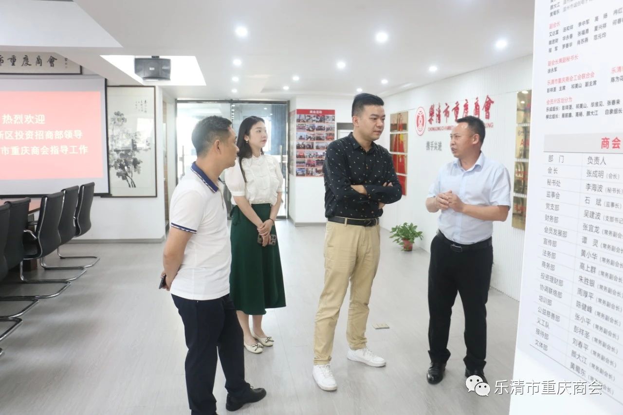5月18日下午,重庆市涪陵高新区投资招商部副主任喻韬、招商部科长熊露露、招商部专员李湘吟一行莅临乐清市重庆商会座谈交流。乐清市重庆商会会长张成明、党支部书记吴建波、常务副会长张宜龙、执行秘书长吴岩芳等参加座谈。