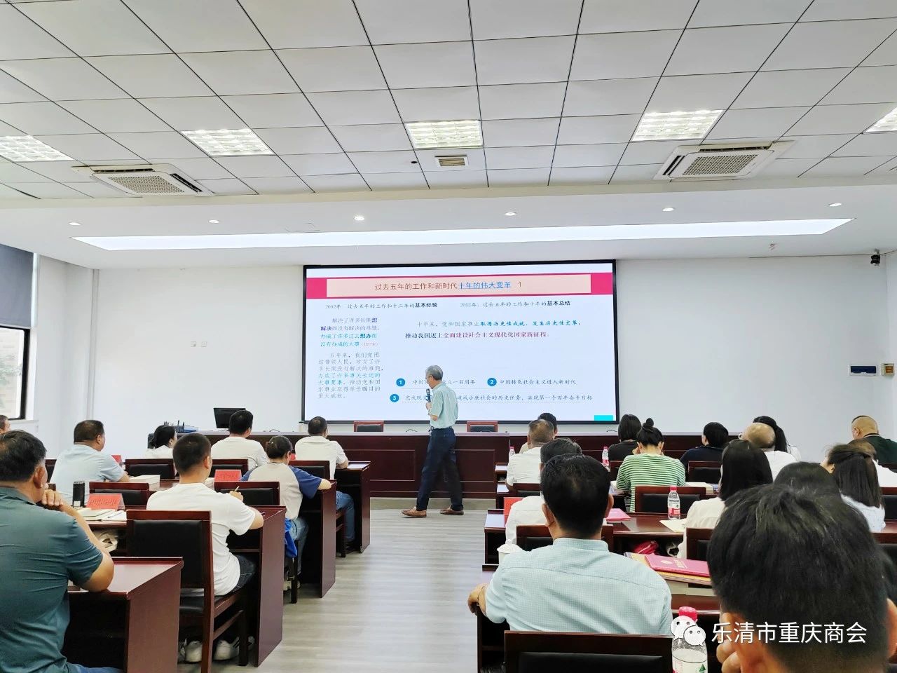 会议特邀温州市决策咨询委员会委员、温州市委党校原副校长、省知名的理论\政策\形势宣讲师蒋儒标作以“奋进新征程,推进中国梦”为主题的讲座。