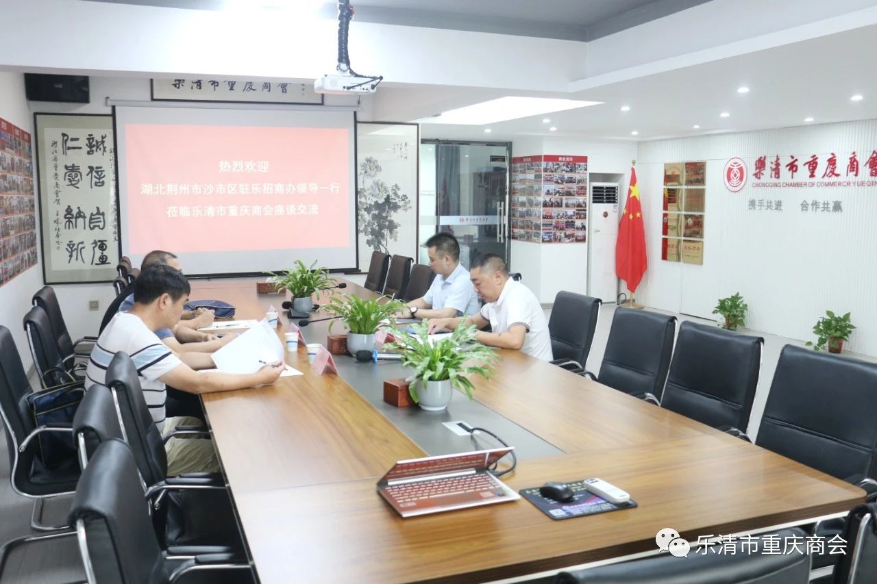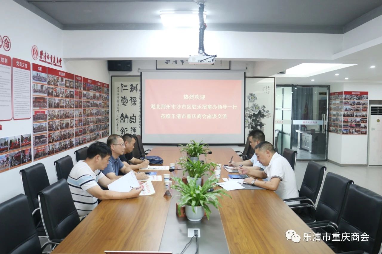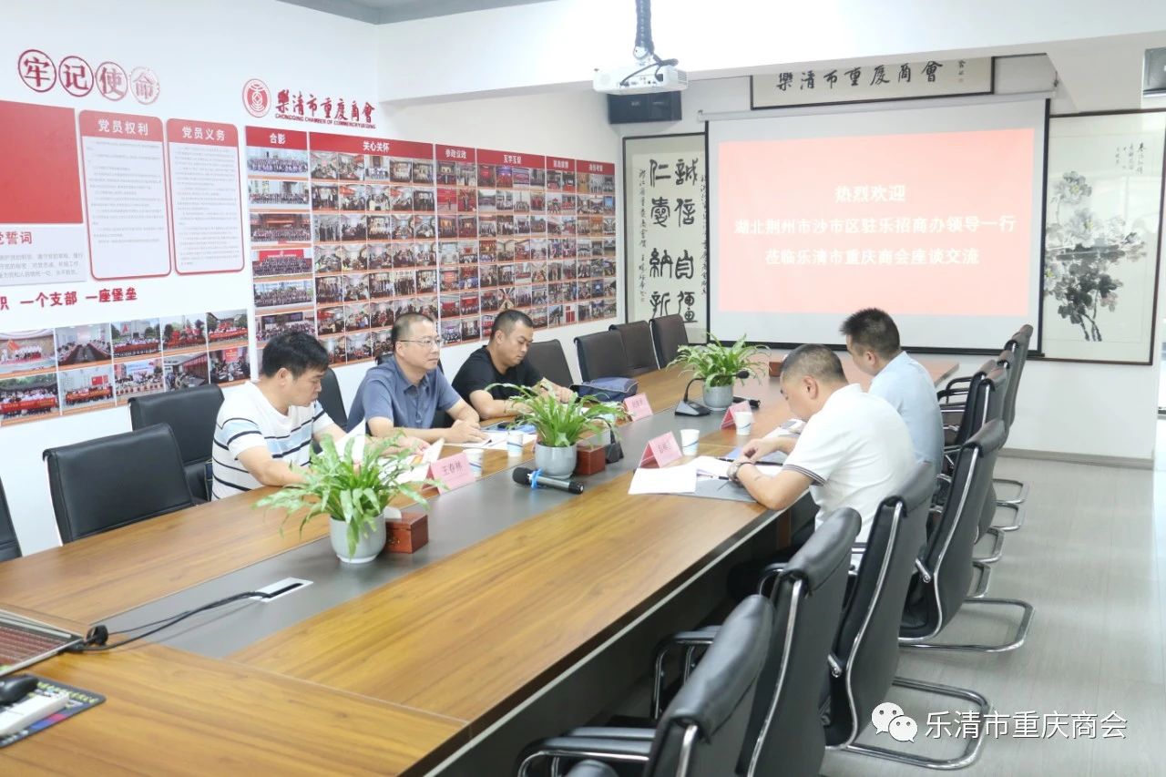 7月17日下午,湖北省荆州市沙市区驻乐清招商办主任杜青,招商办专员刘先波、王春林一行莅临乐清市重庆商会座谈交流。乐清市重庆商会本月轮值会长彭祥圣、轮值副会长李进参加座谈。