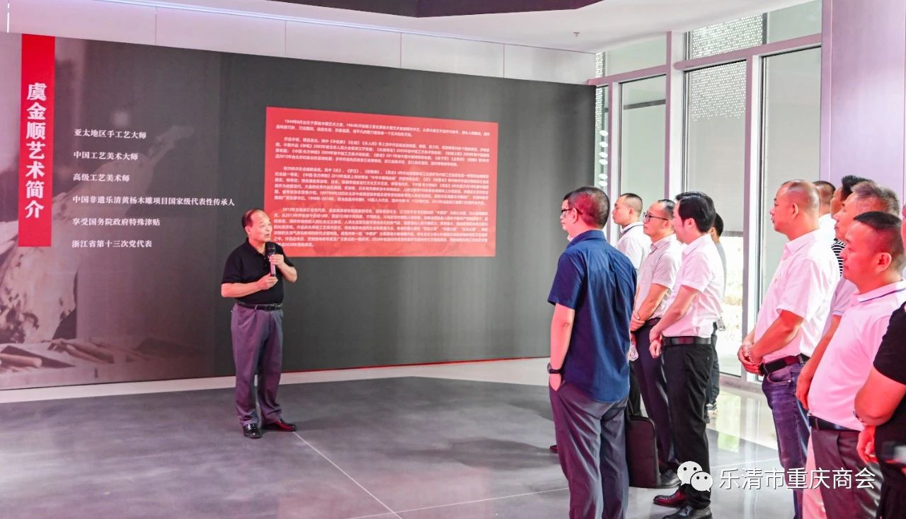 乐清市新居民服务中心副主任、党支部书记张志杰主持活动并讲话,云谷艺术馆董事长黄献锋致辞,亚太地区手工艺大师、中国工艺美术大师虞金顺,城南街道南山社区党委书记林峰,柳市镇新居民服务管理所所长施海东及乐清市重庆商会党支部李海波、颜大江、陈国贵,与8家在乐异地商会党支部负责人等30余人参加活动。