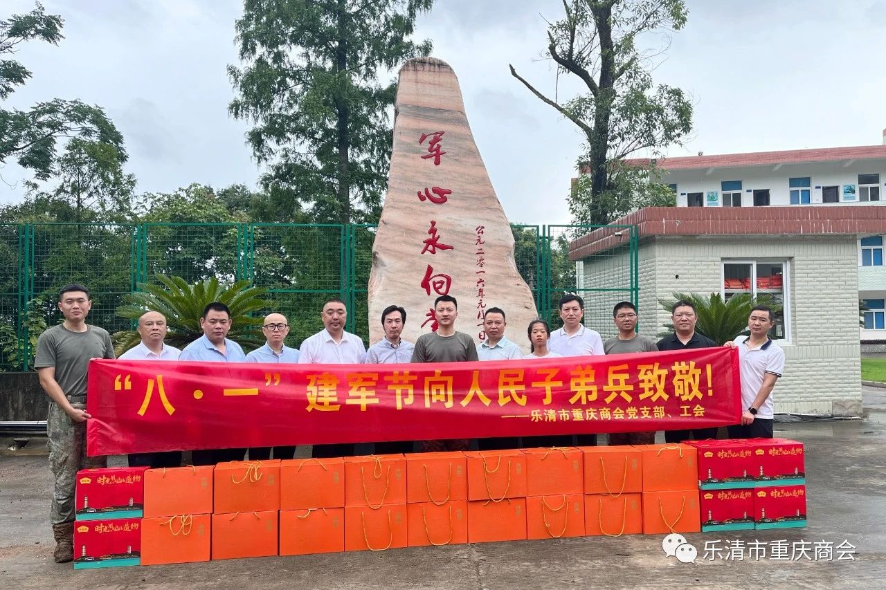 为庆祝中国人民解放军建军96周年,7 月30日上午,乐清市重庆商会党支部、工会一行10余人,赴海军驻乐某部开展“八一”拥军慰问活动,向部队官兵们送去慰问品,并致以节日问候和祝福。