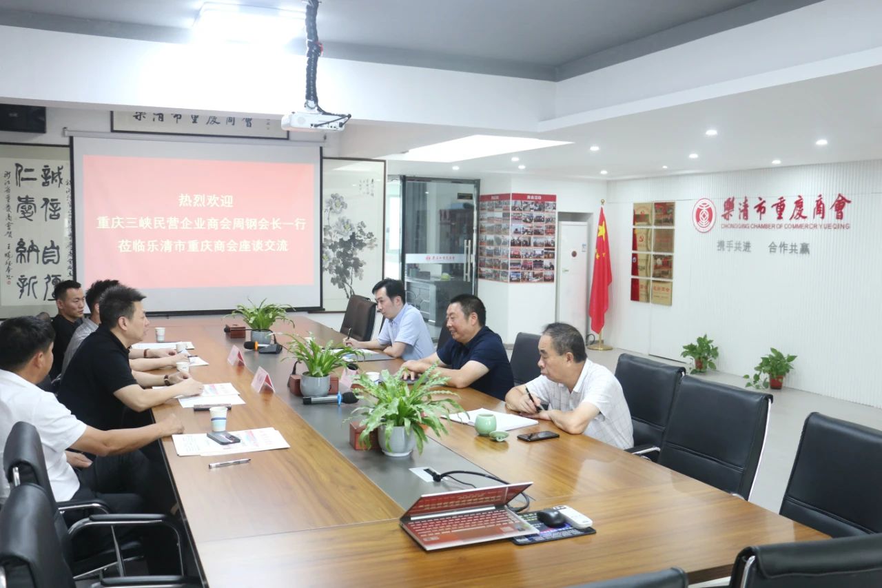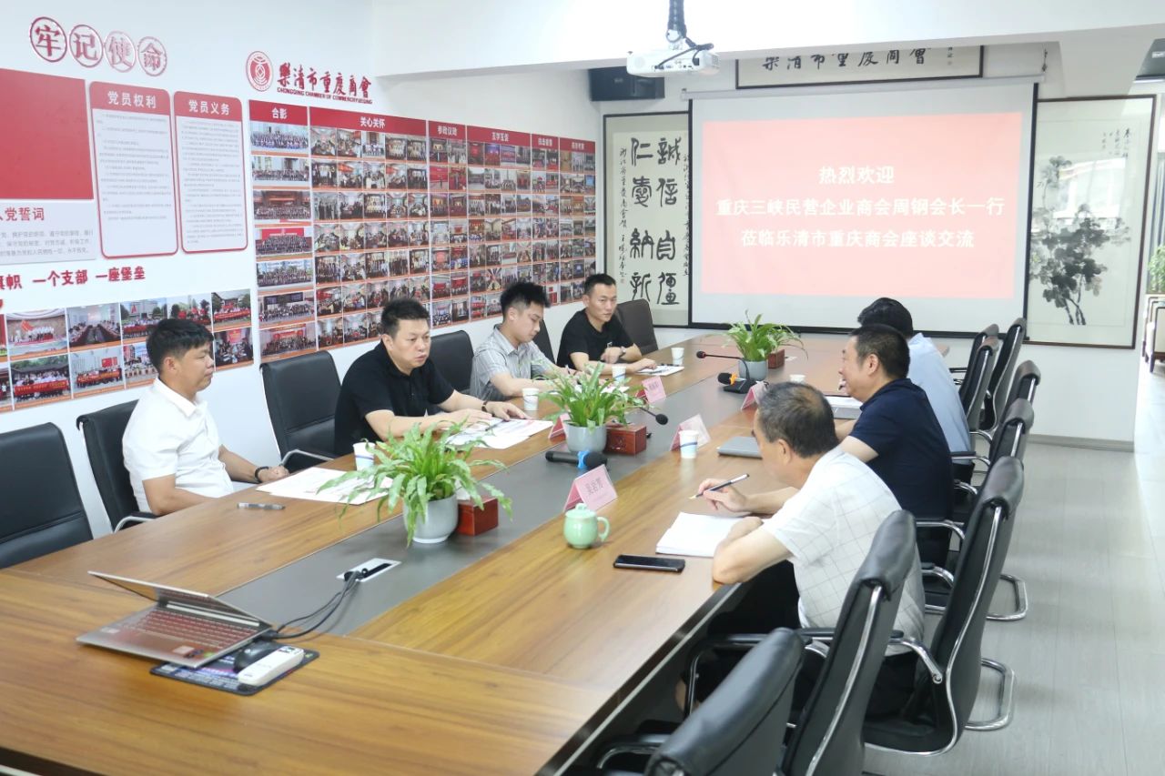8月5日上午,重庆三峡民营企业商会会长周钢一行五人,莅临乐清市重庆商会座谈交流。商会会长张成明、常务副会长兼秘书长李海波、执行秘书长吴岩芳等参加座谈交流。