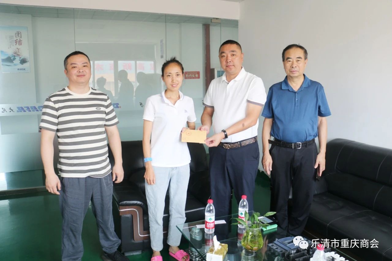 8月7日上午,乐清市重庆商会常务副会长兼工会主席彭祥圣、执行秘书长吴岩芳、办公室张燕丽前往乐清市经济开发区(商会副会长詹天华企业)浙江大凡电子科技有限公司,慰问该公司困难员工,详细询问了解员工患病小孩情况,并送上2000元慰问金。