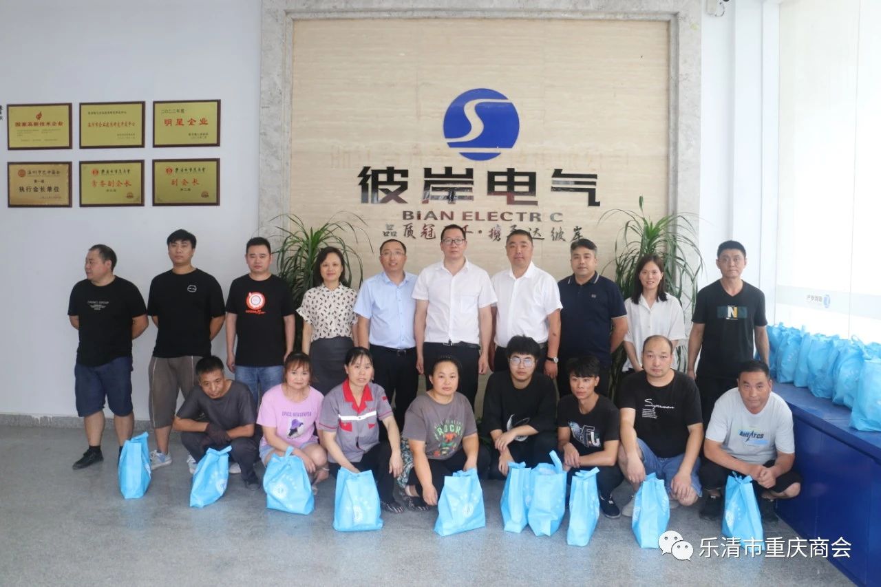 8月17日下午,乐清市总工会党组书记、副主席林秀,党组成员、女职委主任刘稚贤,办公室副主任卢云颖等,在乐清市重庆商会工会主席彭祥圣陪同下,到商会常务副会长单位:浙江蓝图测绘信息有限公司、浙江彼岸电气有限公司,开展“工会送清凉,关怀入企业活动”,并代表市总工会向奋战在高温一线的企业职工表示崇高的敬意。