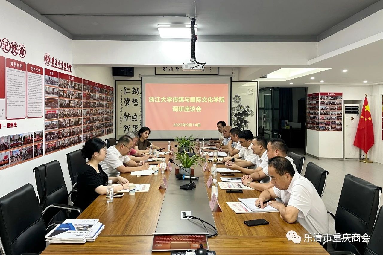 9月14日上午,浙江大学传媒与国际文化学院在乐清市重庆商会办公室召开调研座谈会。