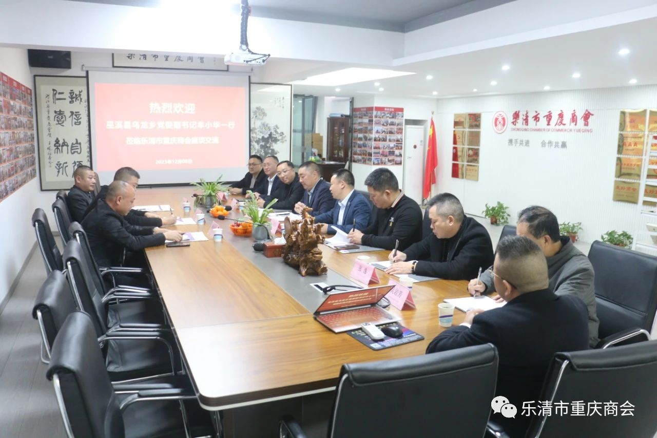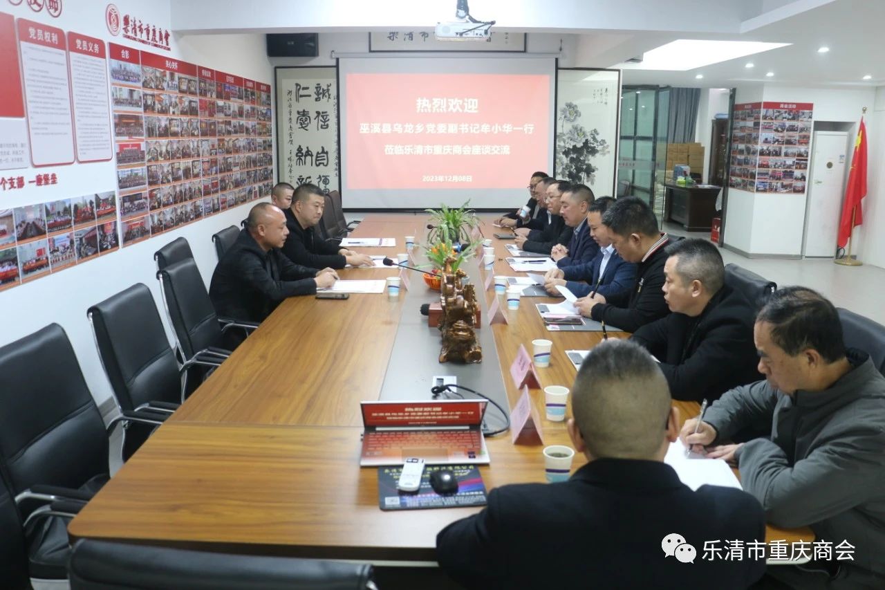 12月8日下午,重庆市巫溪县乌龙乡党委副书记牟小华,乌龙乡水浒村支部书记、村委会主任张厚军等一行三人,莅临乐清市重庆商会座谈交流。