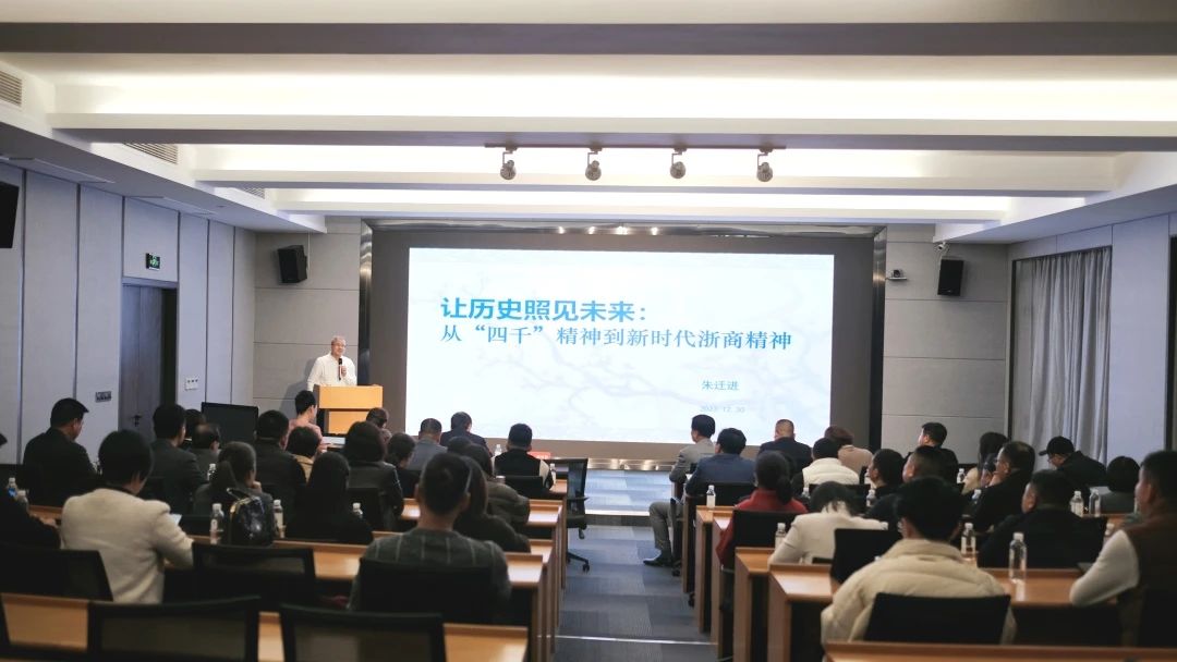 会议特邀浙江省工商联宣传教育部部长、浙江工商大学工商管理学院(MBA学院)实务导师朱迁进作《从“四千”精神到新时代浙商精神》主题讲座。