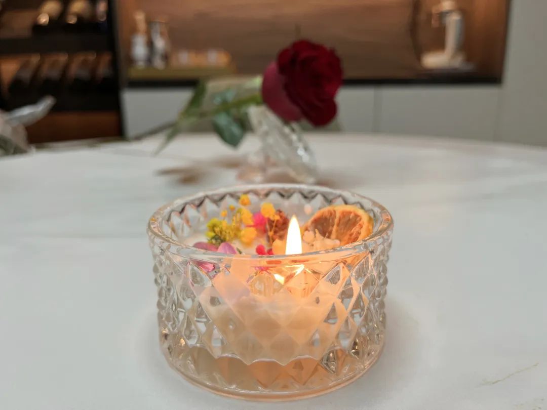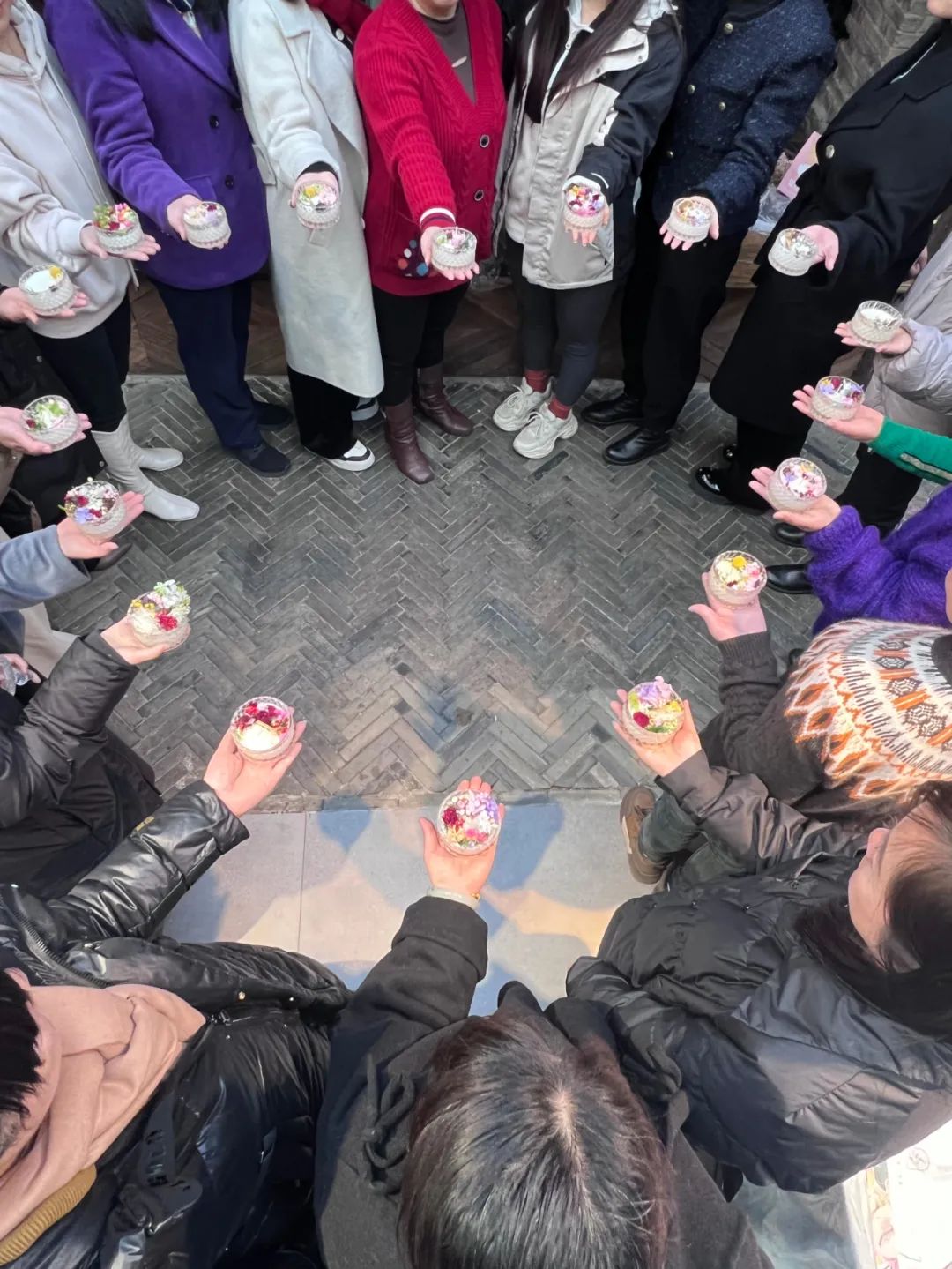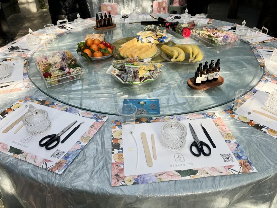 本次活动特邀嘻嘻艺术手工工作室老师,讲解永生花香薰蜡烛的制作。活动现场,大家按照老师的讲述指导,按个人喜好搭配好花材,并插入装有蜡烛的玻璃杯中,静待冷却,完成作品。