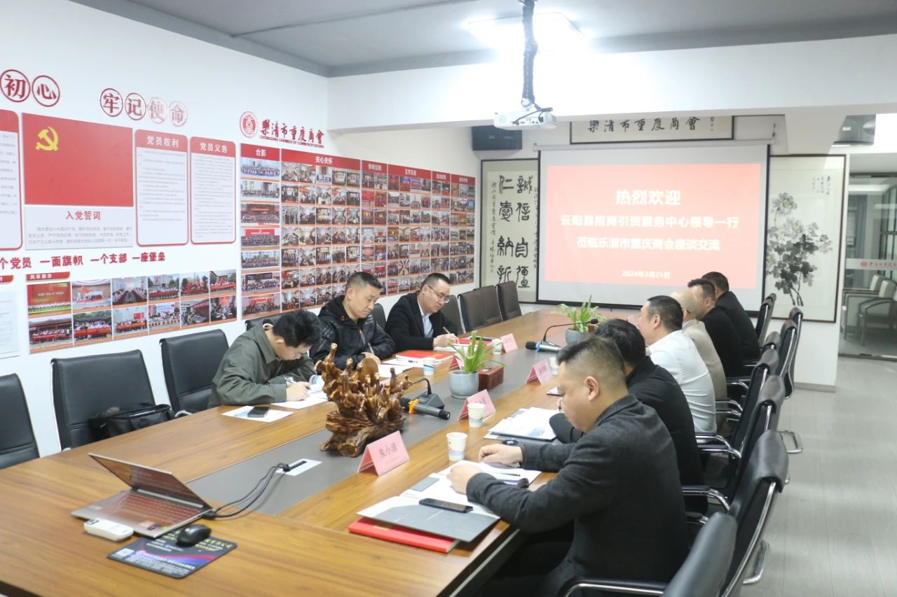 张成明对向黎馨一行的到来表示热烈欢迎,并简要介绍乐清及乐清市重庆商会的相关情况,商会成立10年来,现有会员企业300余家,主要从事电器、电子、机械、自动化等行业;商会以打造“学习型、规范型、服务型、发展型”的办会目标,始终坚持以政治为引领,跟党走、听党话、感党恩,引领会员爱国敬业、守法经营、回报社会、反哺家乡,展示在乐渝商的良好形象。