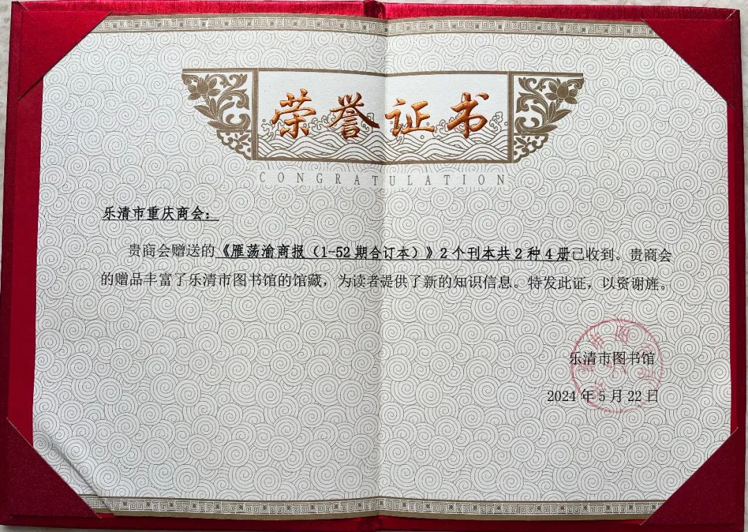 5月22日下午,“在这里读懂温州”文化融合活动之新居民档案捐赠仪式、《乐清人在柯桥》赠书仪式在乐清市图书馆举行。乐清市重庆商会主办的《雁荡渝商报》10年合订本分别被市档案馆、市图书馆馆藏。