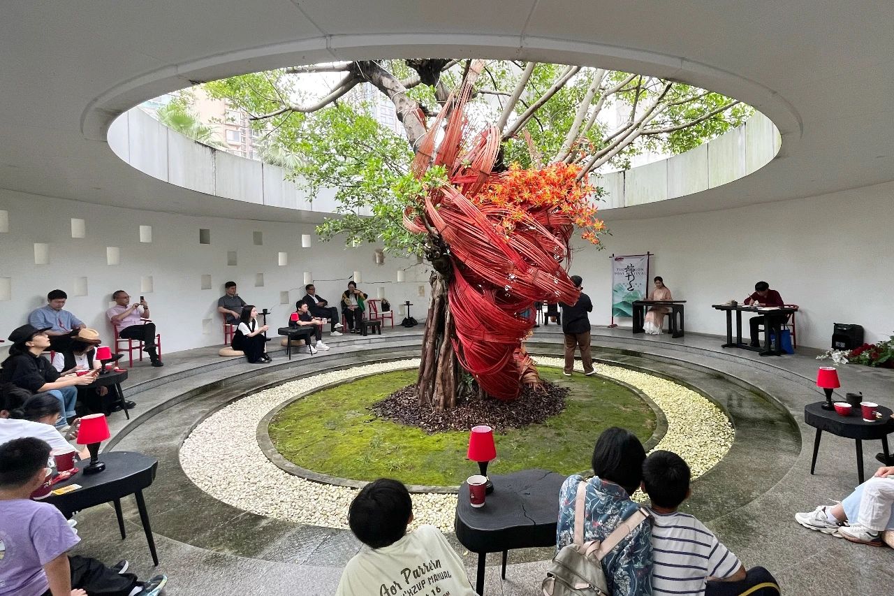 在造设古意的RED红咖沏茶听琴,或席地而坐,泡着粽叶包裹的红茶,手中轻摇着写有‘无事小神仙’的团扇,感觉非常妙,宛如与自然融为一体,让人感受到天地间的宁静和和谐。