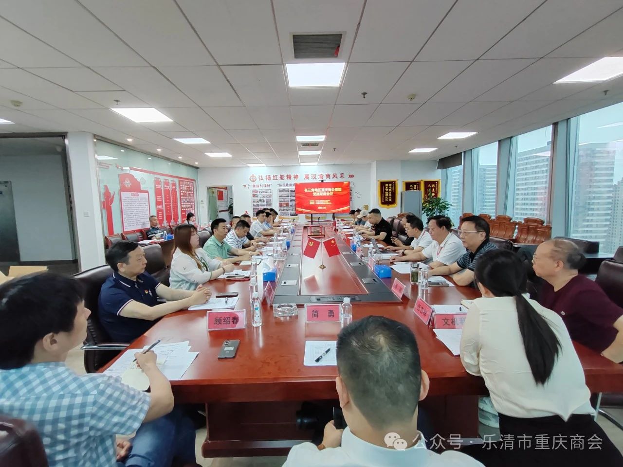 6月22日-23日,首届长三角地区重庆商会联盟党建联席会议在浙江嘉兴召开。重庆市人民政府驻上海办事处经合处负责人顾绍春、经合处三级主任科员文机利出席会议;乐清市重庆商会党支部书记吴建波,与长三角地区22家重庆商会党支部书记、负责人参加会议。