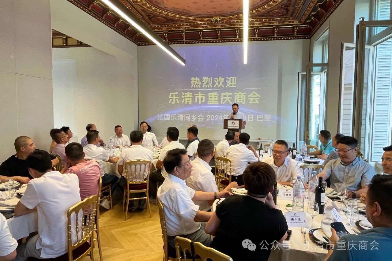2024年8月11日,乐清市重庆商会借组团赴欧洲考察的机会,在欧洲卫视·巴黎人文交流中心,与法国乐清同乡会举行座谈交流会,并缔结为“友好商会”。