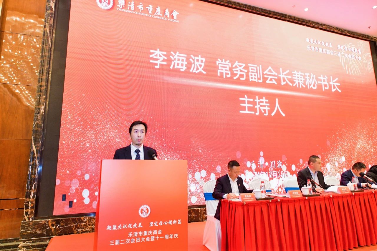 12月15日下午,“凝聚共识促发展,坚定信心谱新篇”乐清市重庆商会三届二次会员大会在虹桥开元大酒店隆重举行。会议同期举行十一周年庆典活动。