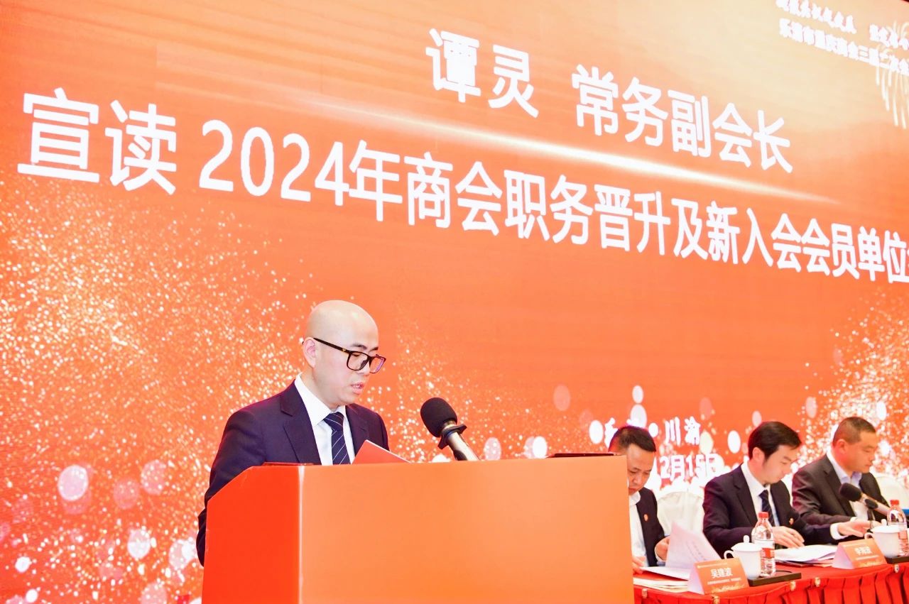 常务副会长谭灵宣读了2024年商会职务晋升及新入会会员单位名单。