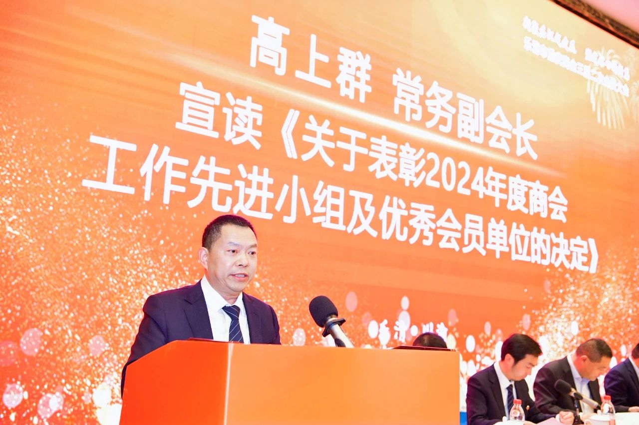 常务副会长高上群宣读了《关于表彰2024年度商会工作先进小组及优秀会员单位的决定》的文件,并进行现场表彰。