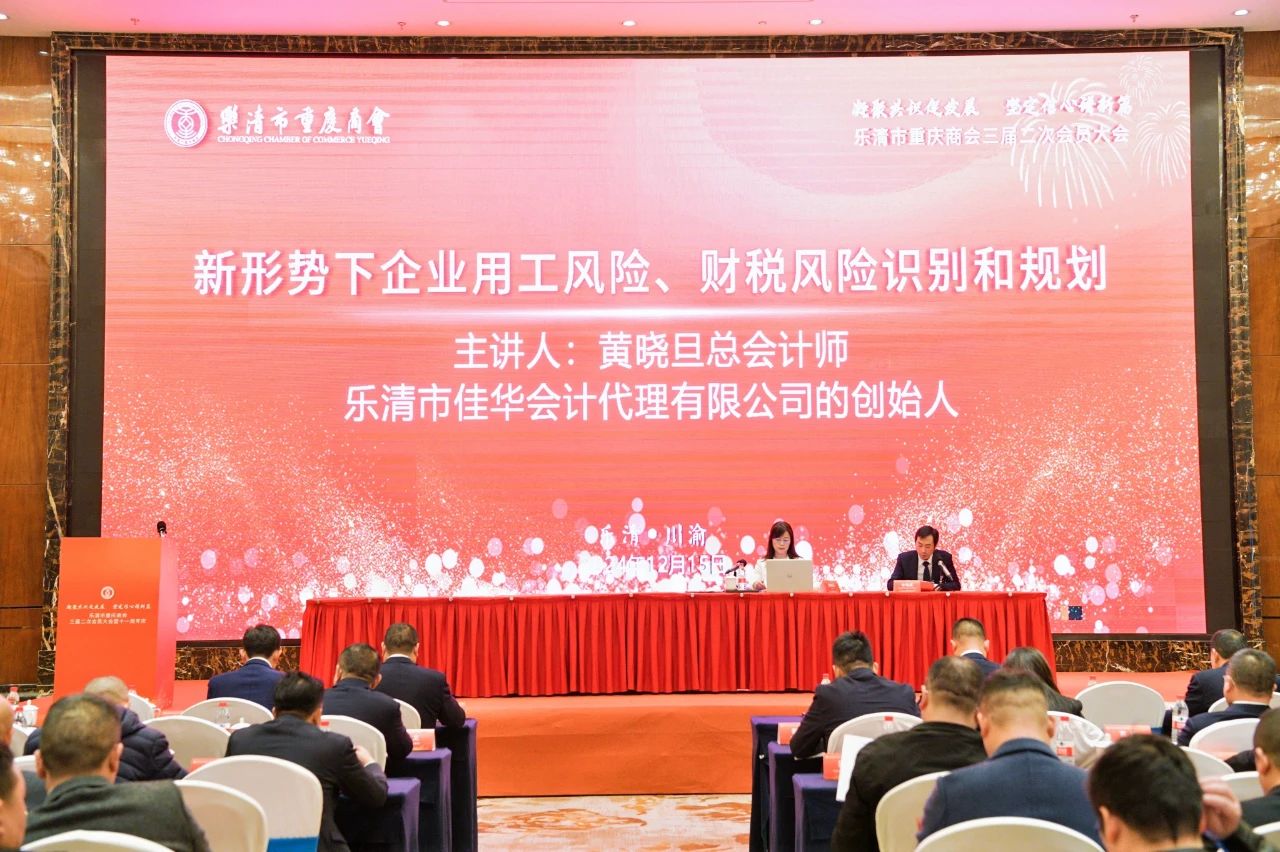 会前,商会邀请了乐清市佳华会计代理有限公司创始人、总会计师黄晓旦作《新形势下企业用工风险、财税风险识别和规划》专题讲座,为商会企业完善财税管理支招,让企业家懂得财税管理的重要性。
