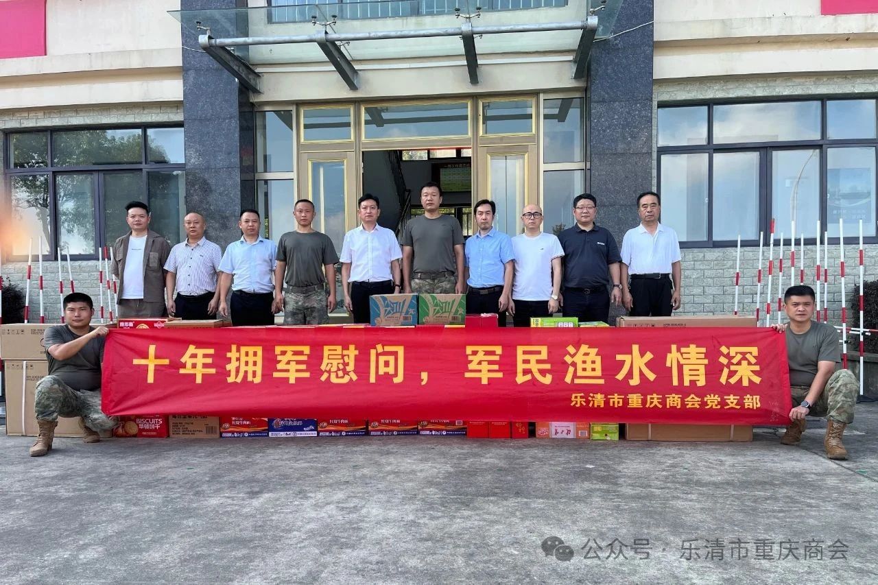 7月31日下午,在“八一”建军节前夕,乐清市重庆商会党支部一行10人,带着两台空调等慰问物资,专程走访空军驻乐清某部队,向全体官兵致以节日的亲切问候。