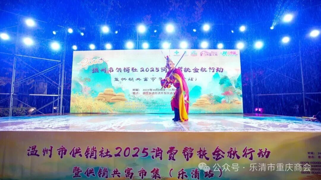 秋风送爽,丹桂飘香。10月30日晚,温州市供销社2025消费帮扶金秋行动暨供销共富市集(乐清站)在乐清经济开发区清亲公园启幕。活动现场,乐清市重庆商会赞助“孙悟空和川剧变脸”两个表演节目。