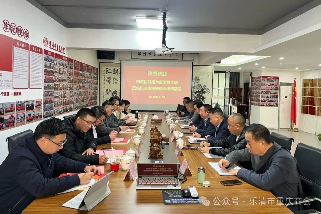 12月16日下午,乐清市政协虹桥片区委员代表倪亮、郑伟、周然、胡旭艳、项国友、胡秀云、连国鹏一行,莅临乐清市重庆商会调研指导并召开座谈会。