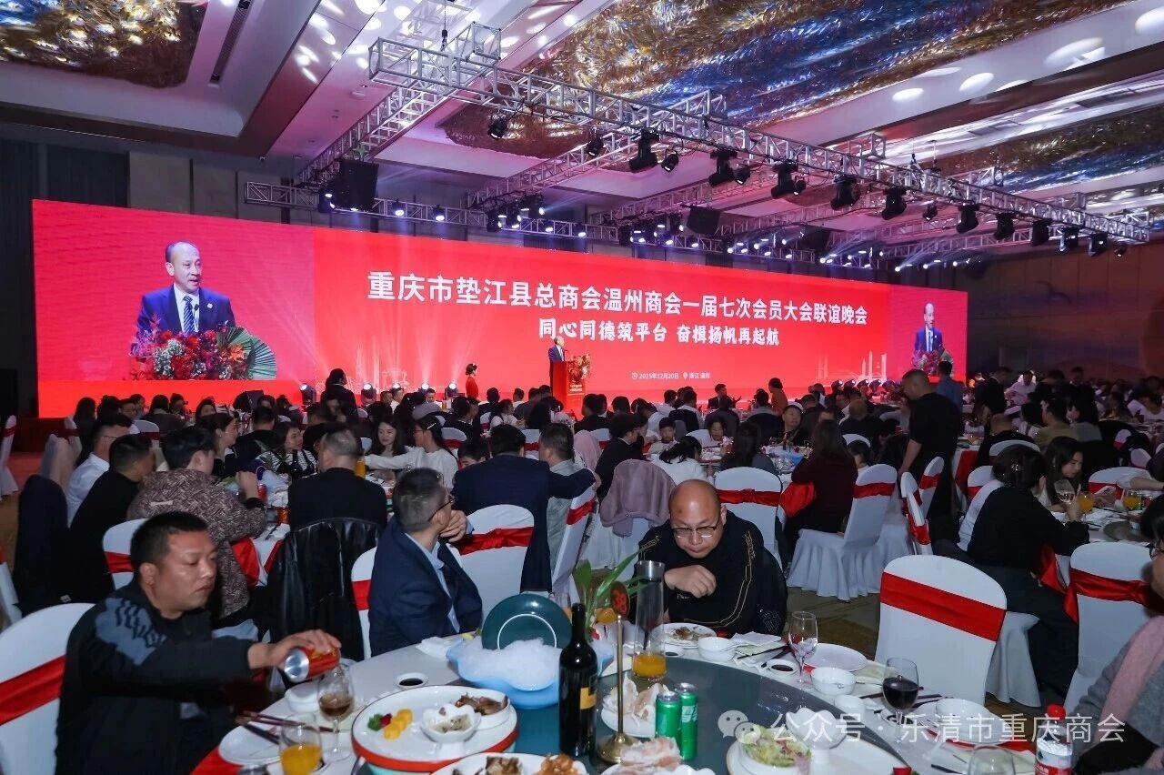 2025年12月20日下午,“同心同德筑平台,奋楫扬帆再起航”重庆市垫江县总商会温州商会一届七次会员大会在温州君廷酒店隆重举行。
