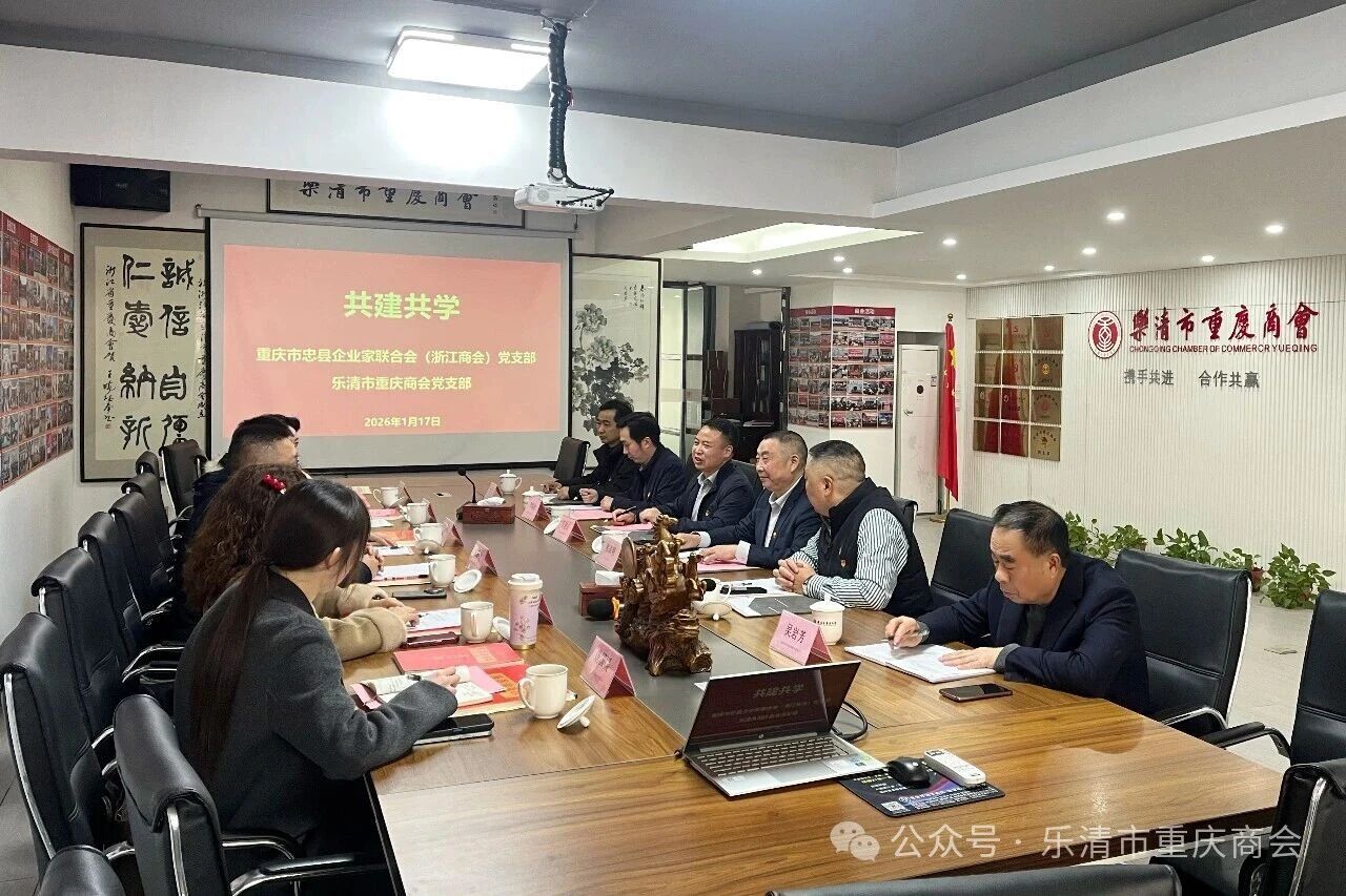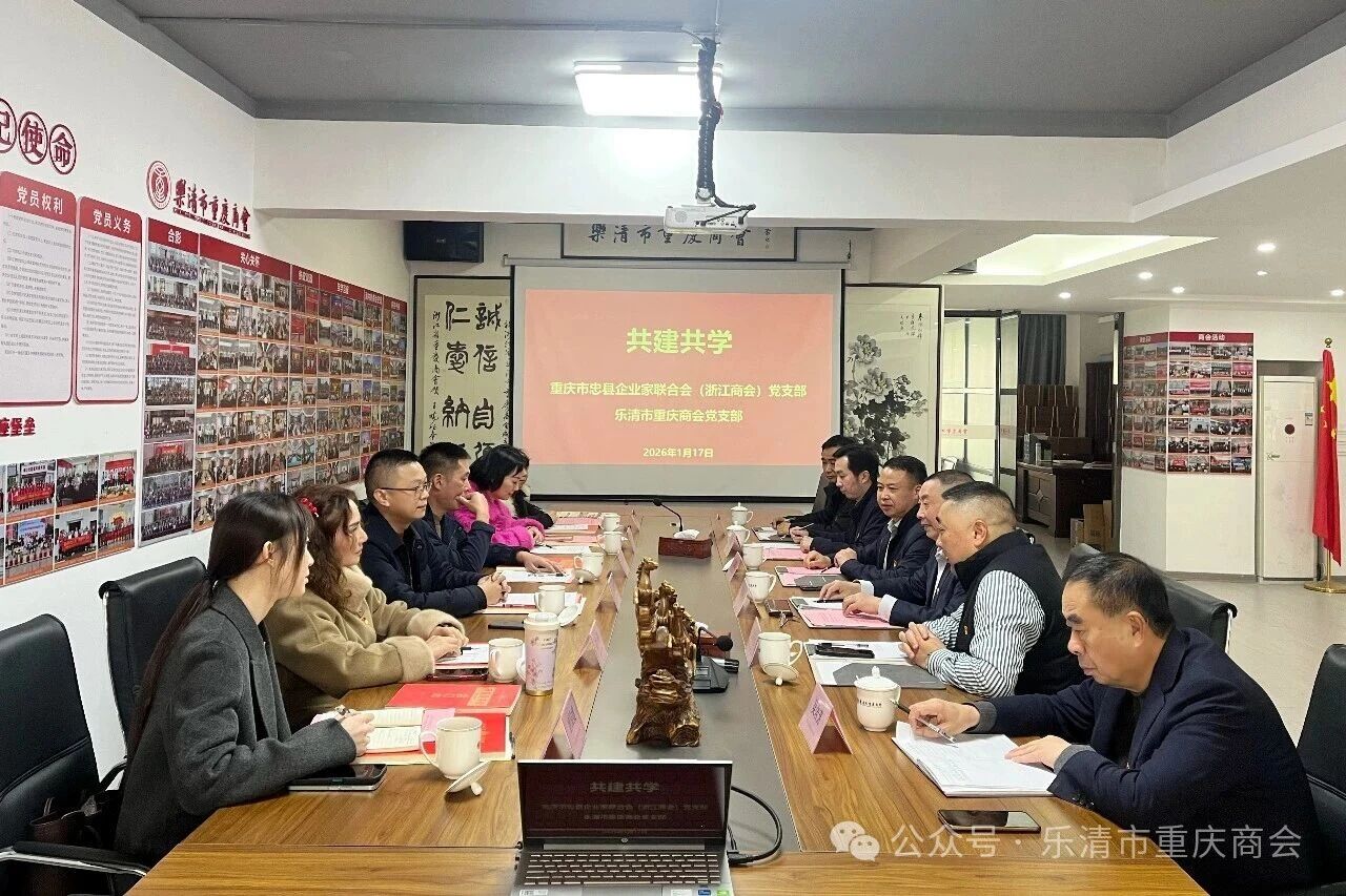 1月17日下午,乐清市重庆商会党支部与重庆市忠县企业家联合会(浙江商会)党支部,在乐清市重庆商会办公室开展党建共建共学活动。
