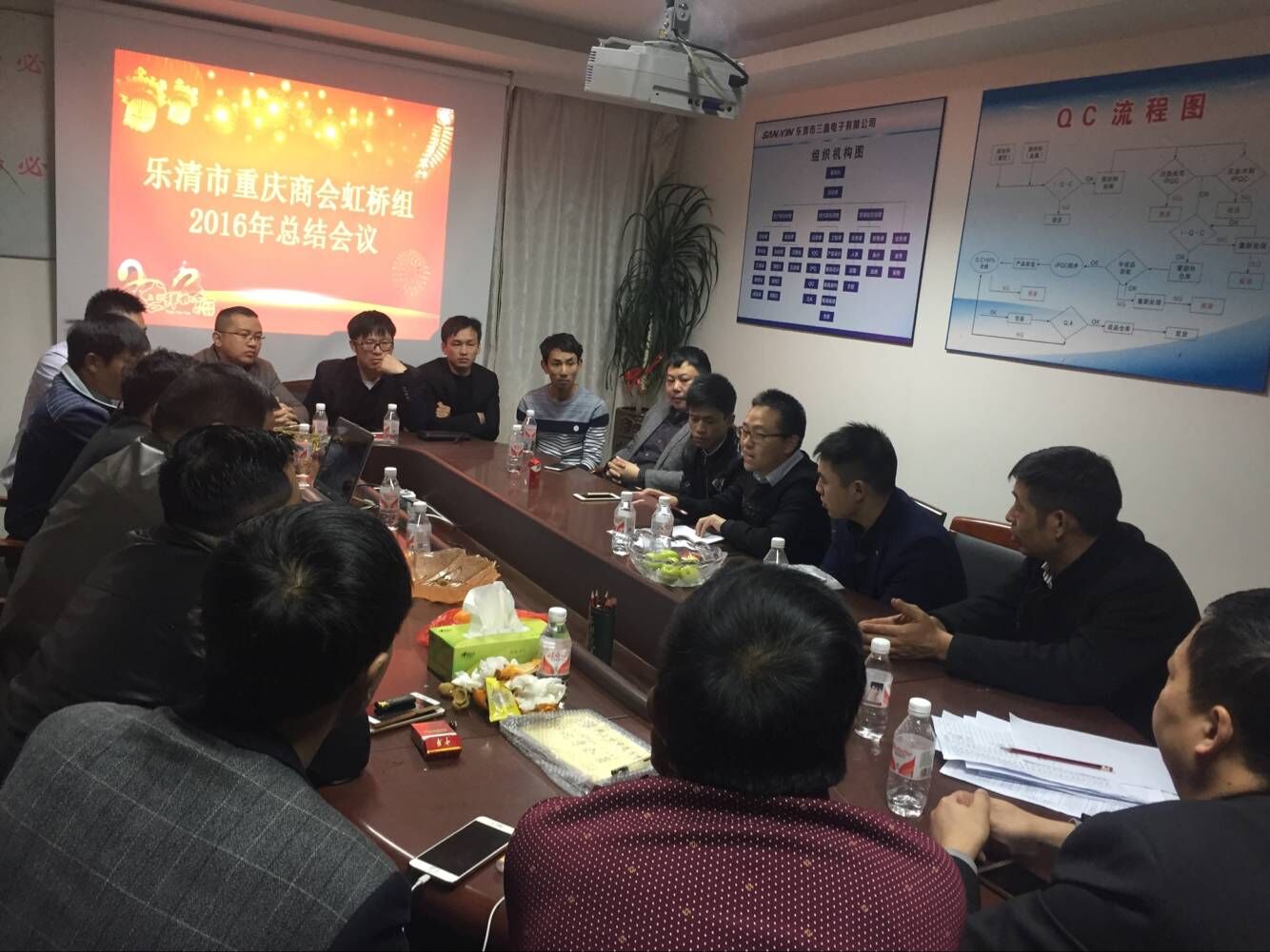 2017年1月8日下午,我会虹桥组在乐清市三鑫电子有限公司办公室召开2016年总结会议,主要议程如下: