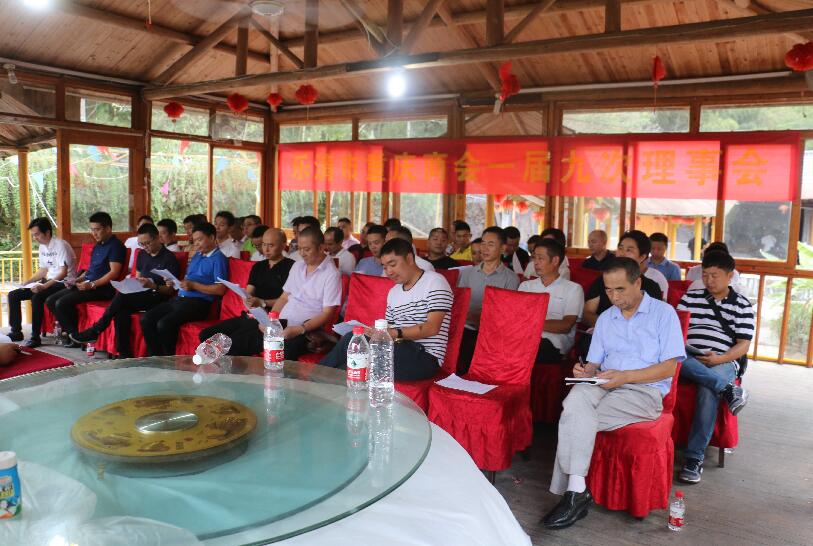 活动期间,商会召开了一届九次理事会,理事会由张成明会长主持,共46名理事参加会议。首先由常务副会长张宜龙通报商会财务状况,然后常务副会长兼党支部书记吴建波做商会党支部工作汇报。再由党支部书记兼常务副会长吴建波主持,进行投票,民主选举新任会长,张成明获全票通过连任二届商会会长。张成明会长在会上表述连任感言,并成立筹备小组为换届大会做好筹备工作,带领商会更健康地可持续发展。
