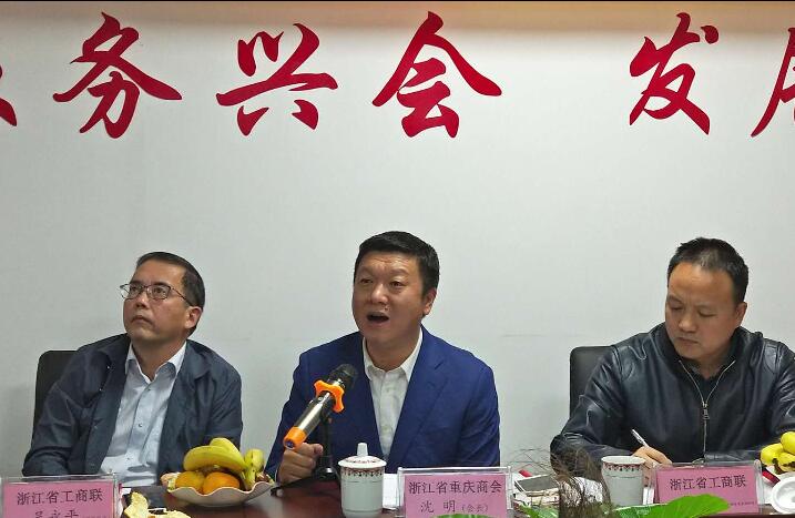 浙江省重庆商会会长沈明发言指出:要打响在浙渝商的好品牌,聚力抱团。共产党为人民谋福利,在浙渝商为会员谋福利,不断吸收优秀的在浙渝商,做好互联、互通,着眼实际、围绕共同的价值观,争取打造百年商会的愿景。加强商会之剑的沟通联系,建立大微信圈,建立渝商品牌活动,共同树立渝商大品牌。