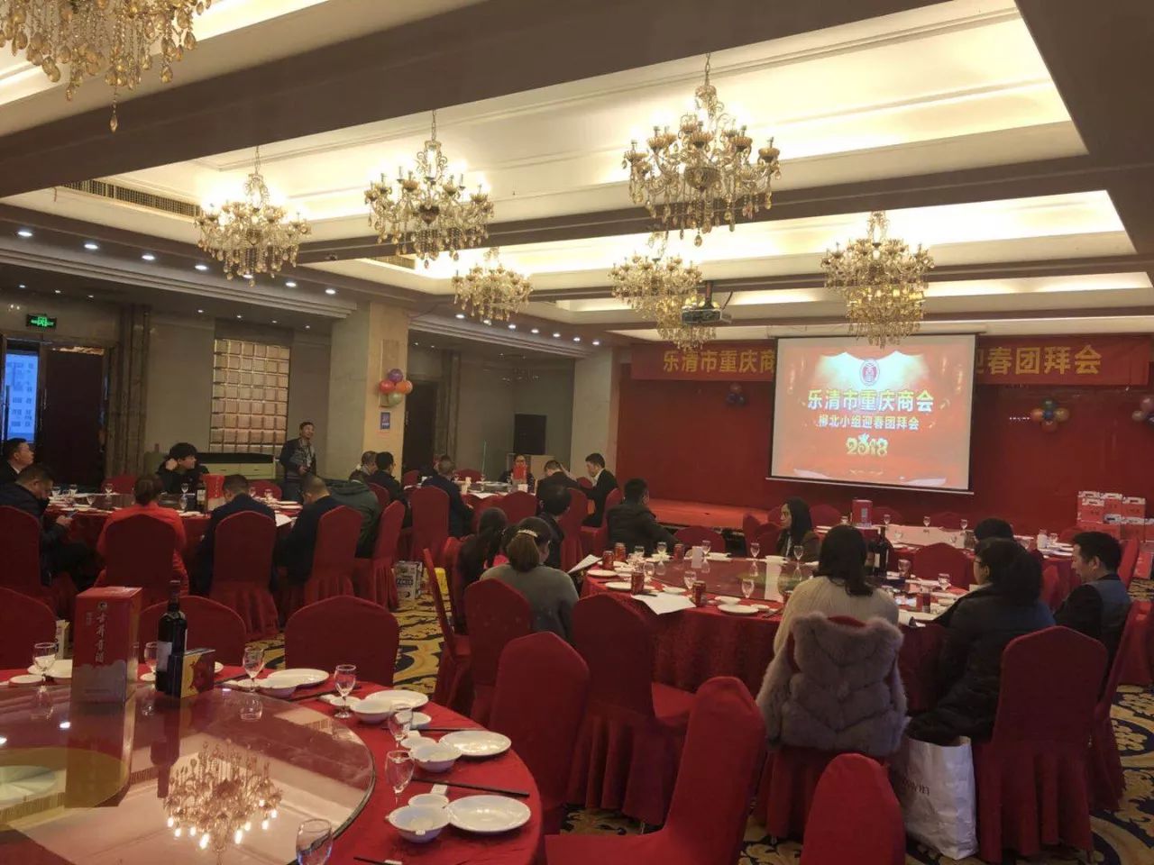 乐清市重庆商会柳北组迎春团拜会于2018年1月16日下午四点在柳市夏威夷大酒店夏威夷厅隆重举行,本次团拜会小组特邀了商会常务副会长兼秘书长李海波,监事长陈世均,常务副会长兼党支部书记吴建波,常务副会长谭灵、刘春平、罗德彬,副会长龙海川、程才兵、王小强、周厚平、冉红波、陈健峰、刘晓林,副秘书长徐永军等多名商会领导以及商会虹桥组、白象组、乐成组、柳南组组长等负责人及会员,会员家属共计65人出席本次活动。