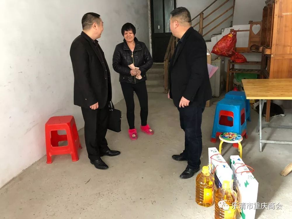 3月9日下午,会长张成明、常务副会长兼秘书长李海波、常务副会长兼党支部书记吴建波、常务副会长高上群、执行秘书长吴岩芳、副会长周厚平、副秘书长徐永军、虹桥片区组长张必迁等一行,前往乐清市清江镇礁头村对5户贫困家庭进行新春走访慰问,送上了食用油、牛奶和新春红包。清江镇人大常委会副主任阮联清和礁头村主任陈盛宝等陪同走访慰问。