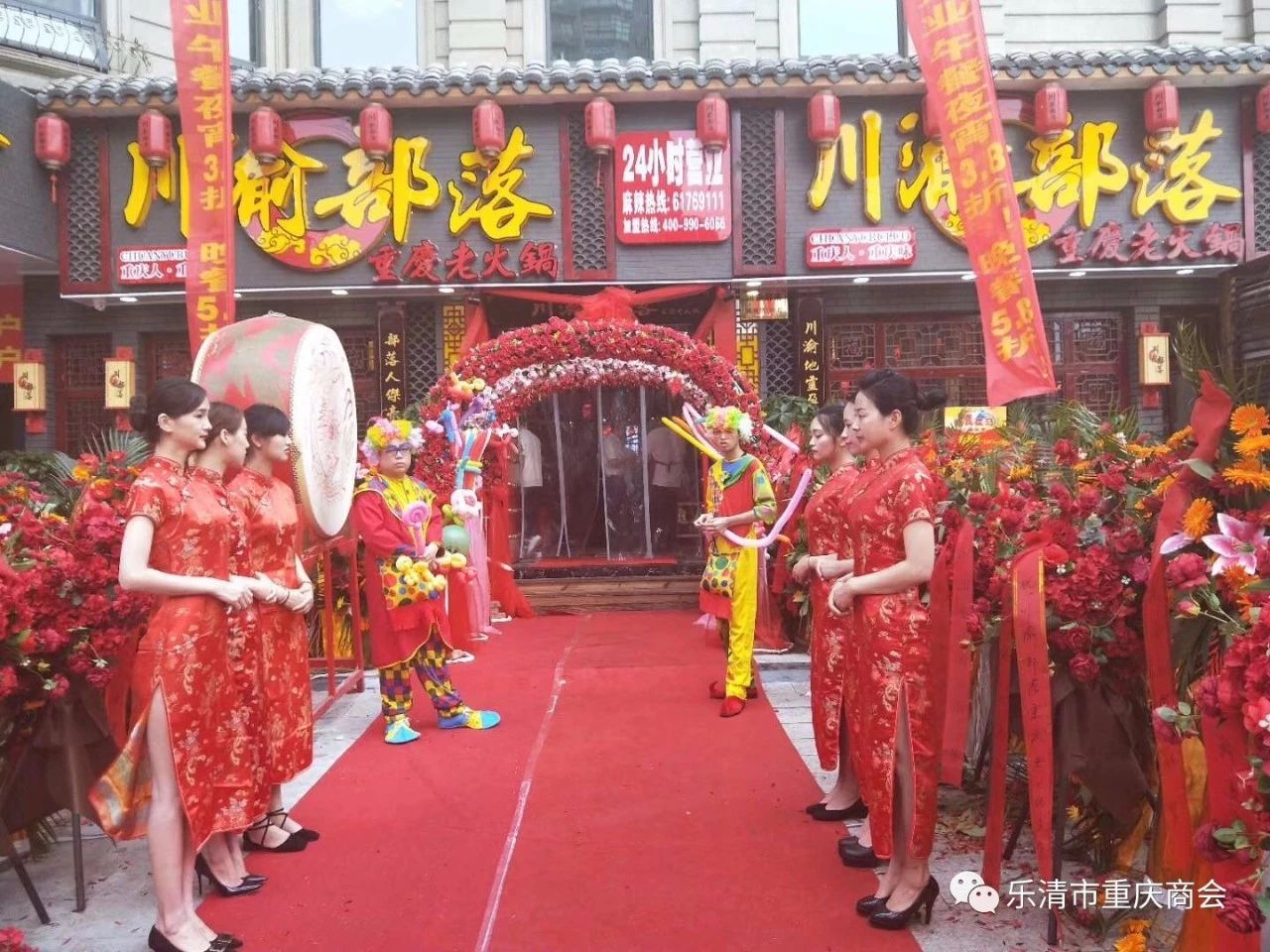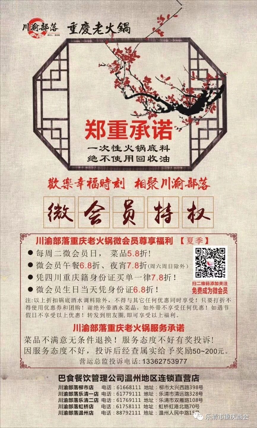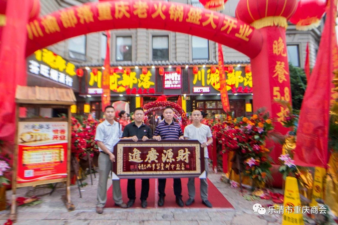 5月18日我会副会长单位川渝部落重庆老火锅乐清二店喷香开业,商会常务副会长兼秘书长李海波,常务副会长谭灵、罗德彬,副会长颜大江、龙海川、陈健峰、黄小华、高扬等商会领导一行15人到场祝贺。