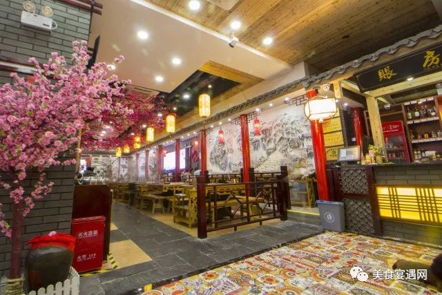设计师采用炫目红色和本真灰色,采用极具视觉冲击力的色彩表现张力,诠释了经典的重庆老火锅文化。