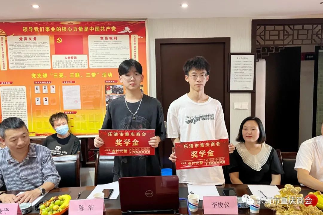 莘莘学子传喜讯,硕果累累迎金秋。彭祥圣代表商会向即将走向人生新起点的李俊仪、陈浩表示祝贺,同时也向二位家长送上最真挚的祝福。他说,金榜题名金秋助学活动是乐清市重庆商会开展的一项爱心助学举措,体现了商会对会员子女教育的关心,对下一代健康成长的重视。