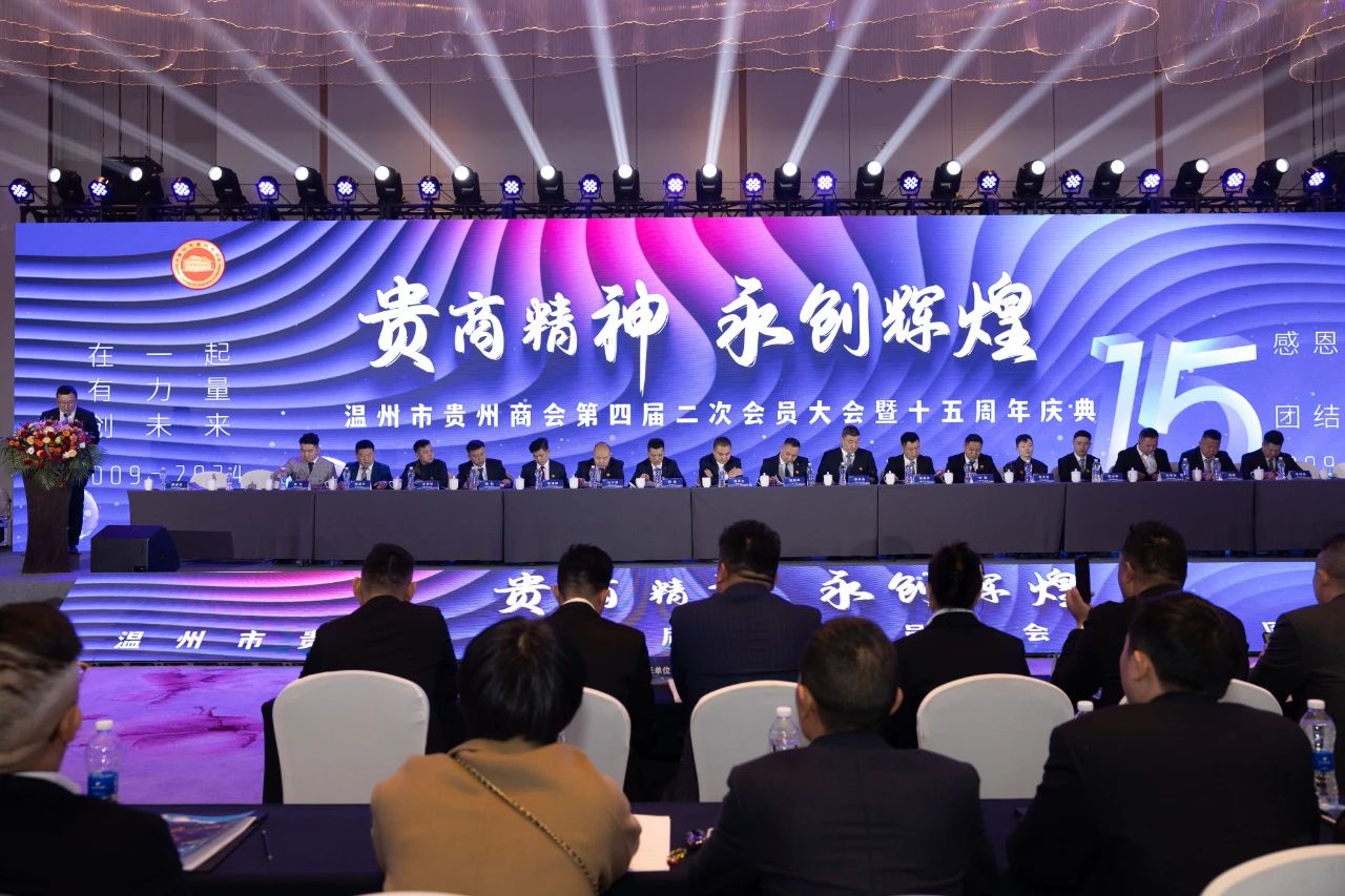 12月14日下午,“贵商精神·永创辉煌”温州市贵州商会第四届第二次会员大会暨十五周年庆典在温州开元名都大酒店隆重举行。