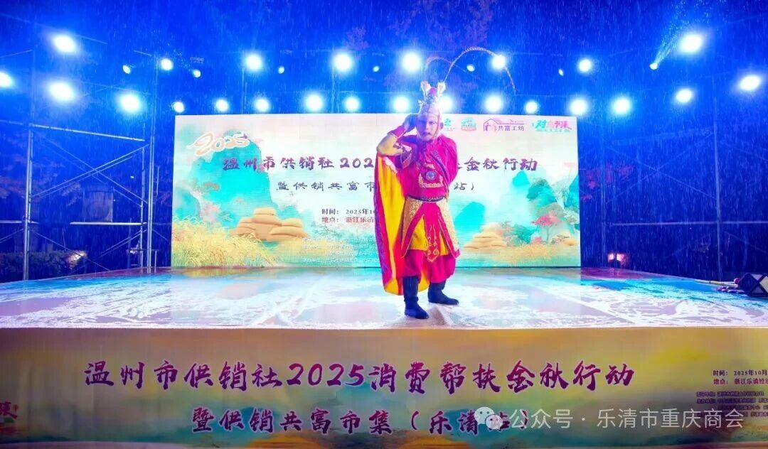 秋风送爽,丹桂飘香。10月30日晚,温州市供销社2025消费帮扶金秋行动暨供销共富市集(乐清站)在乐清经济开发区清亲公园启幕。活动现场,乐清市重庆商会赞助“孙悟空和川剧变脸”两个表演节目。
