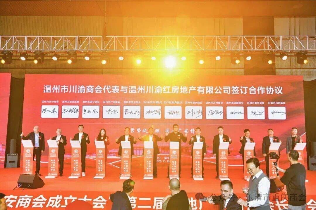 会议还举行了温州市广安商会首届领导班子授牌典礼和合作签约仪式。期间,温州市广安商会与乐清市重庆商会签约缔结为“友好商会”。