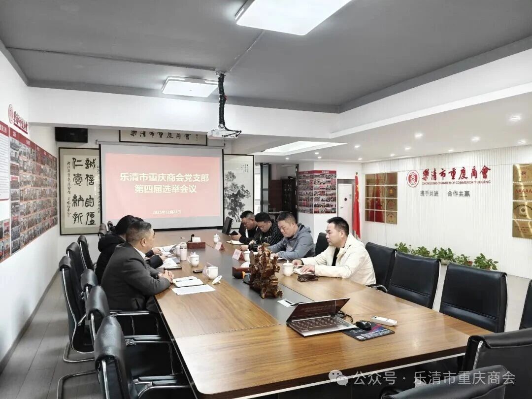 12月23日下午,中共乐清市重庆商会支部委员会换届选举大会在商会会议室举行。中共乐清市民政局社会组织联合党委委员万雯雯到会指导,支部党员吴建波、彭祥圣、何其勇、颜大江、陈国贵等参加会议。会议由颜大江主持。