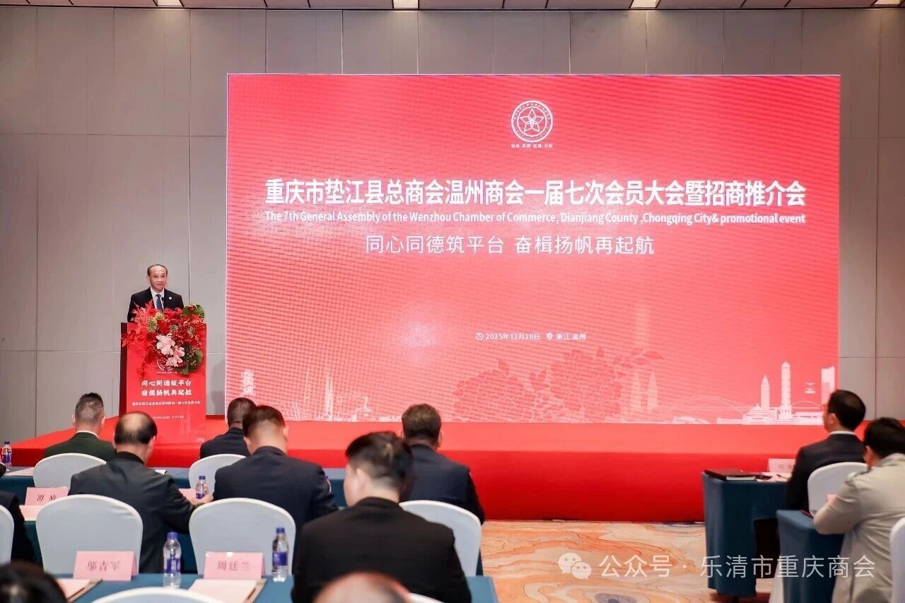 2025年12月20日下午,“同心同德筑平台,奋楫扬帆再起航”重庆市垫江县总商会温州商会一届七次会员大会在温州君廷酒店隆重举行。