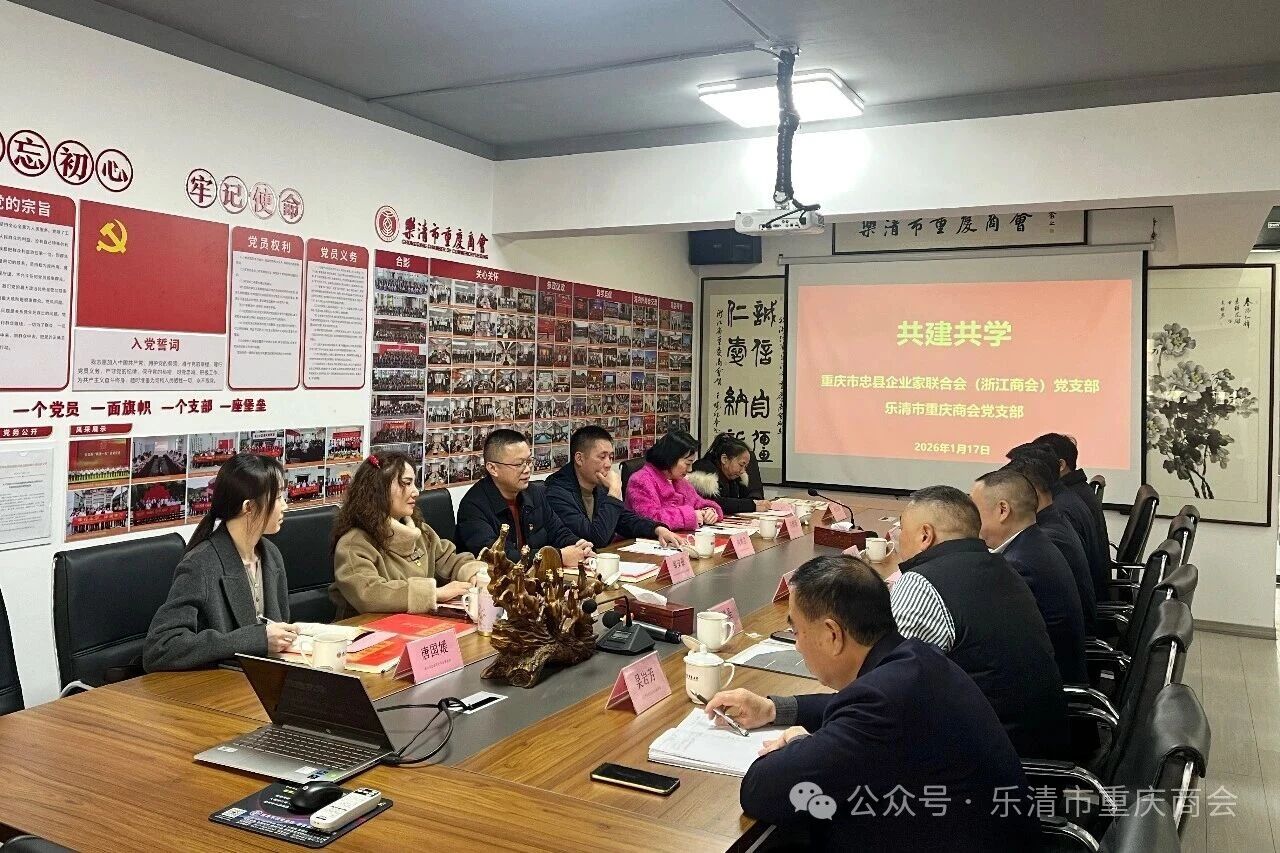 1月17日下午,乐清市重庆商会党支部与重庆市忠县企业家联合会(浙江商会)党支部,在乐清市重庆商会办公室开展党建共建共学活动。